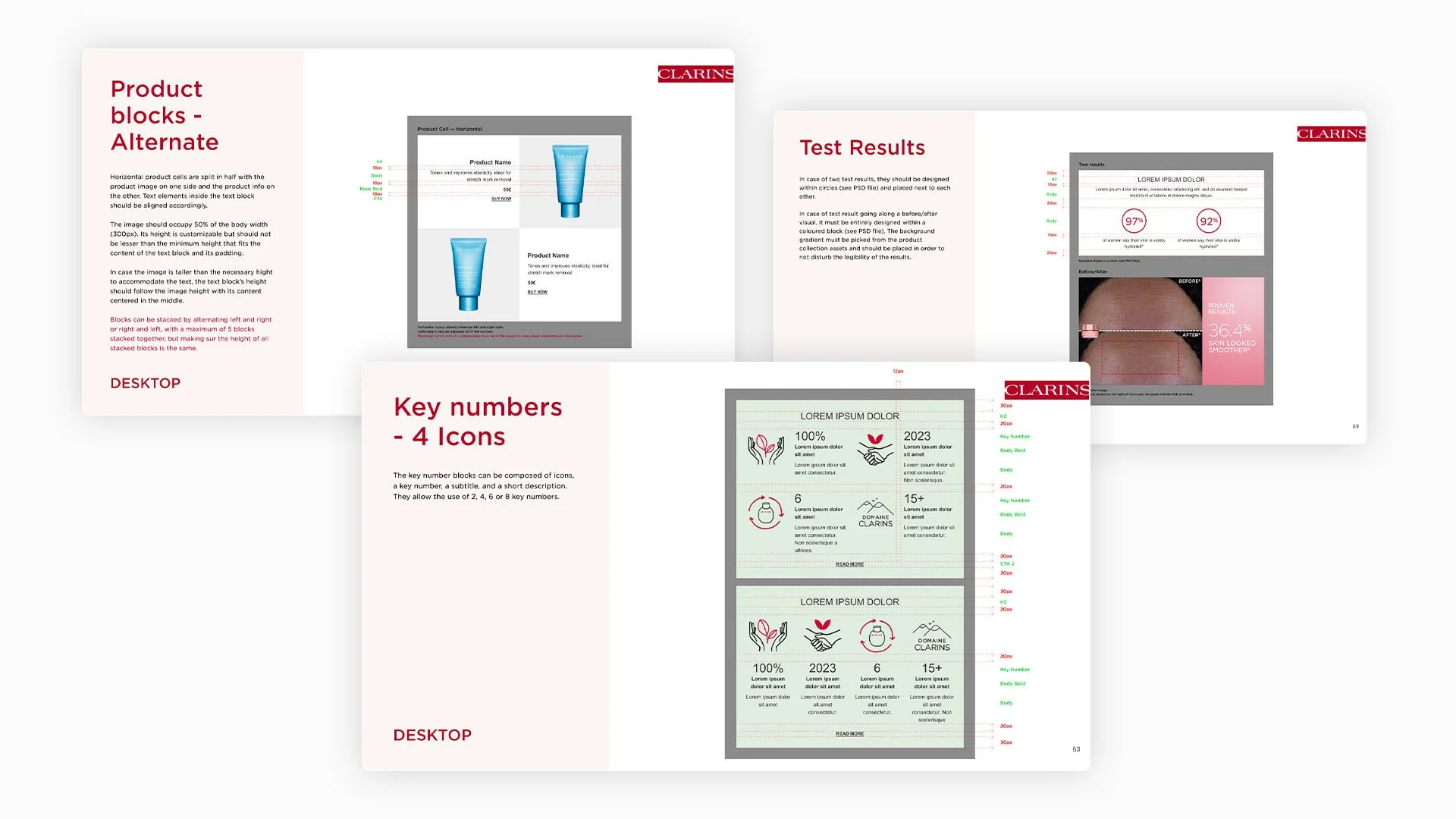 Creation of a design system on Figma for Clarins CRM team, providing guidelines for both desktop and mobile, and helping them to develop a broad range of emails: newsletters, product launch, seasonal campaigns, Club Clarins, etc.